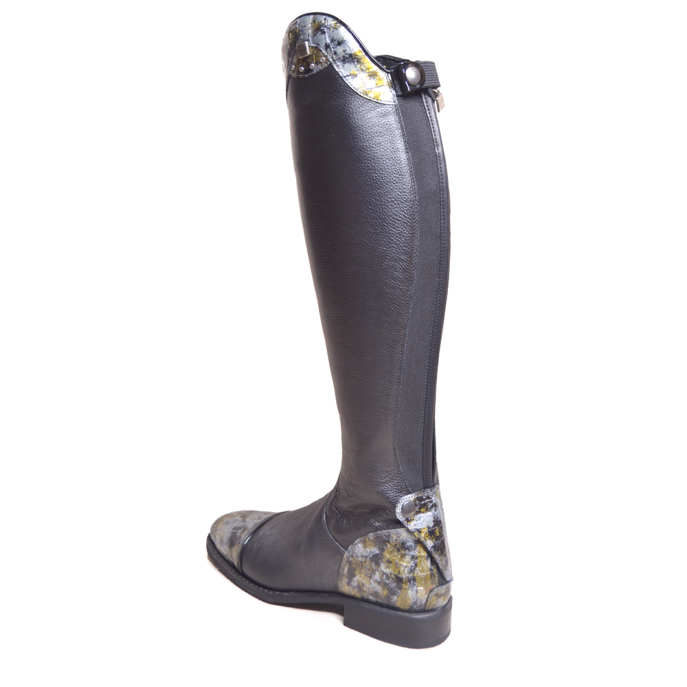 The Julia riding boot truly has it all. Crafted with care, premium caprice leather delivers exceptional comfort, while elasticated panels create a close-contact fit. Moreover, the elegant top section—exclusive to this model—lets you customise the design to reflect your personal style.